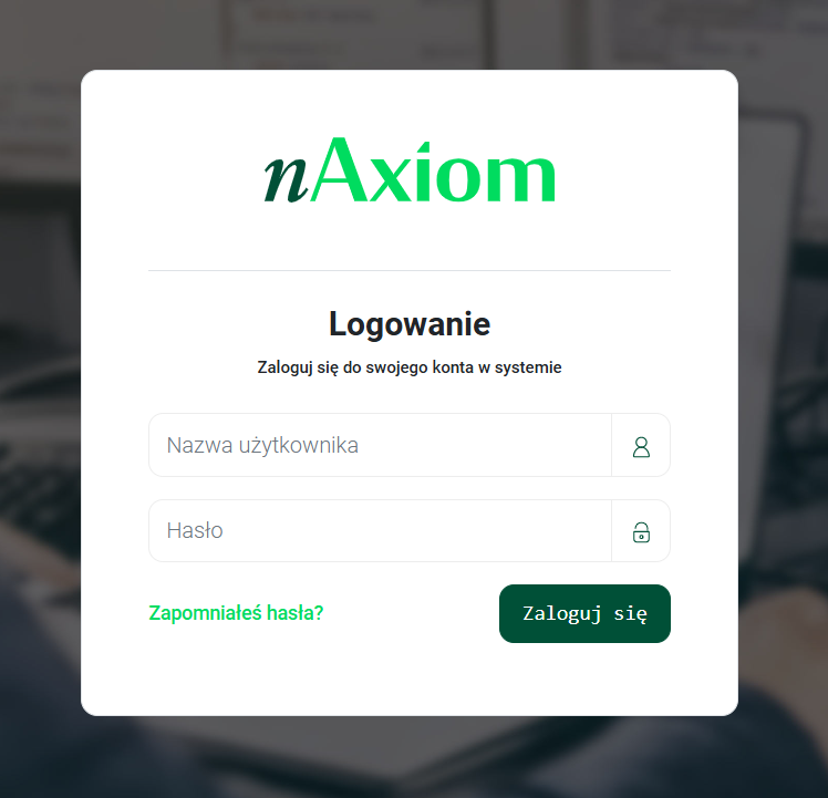 ...Time of the file access "/tmp/certificate.key" changed, removing from disk. - Następnie sprawdź, czy pod adresem https://<naxiom-domain> jest dostępna witryna nAxiom. Jeśli cały proces przebiegł poprawnie, zostanie wyświetlona strona logowania.