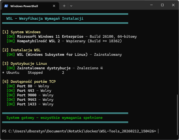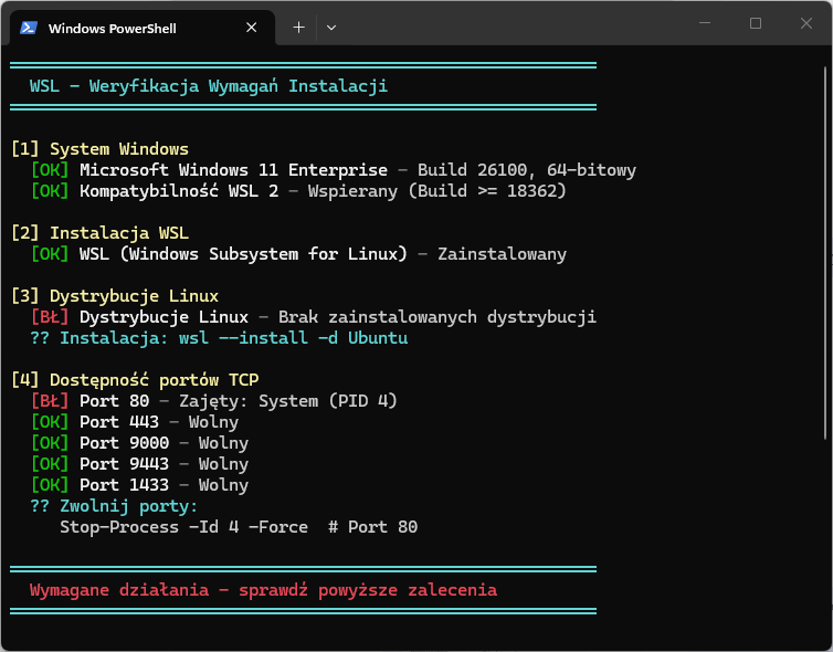 Po zainstalowaniu dystrybucji Ubuntu i zwolnieniu portu można pownonie uruchomić skrypt weryfikacyjny.