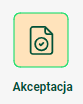 Akceptacjareprezentuje krok w procesie, w którym co najmniej jeden użytkownik z wyznaczoną rolą musi podjąć decyzję, mając do wyboru dwie możliwości: zaakceptować dokument lub go odrzucić.